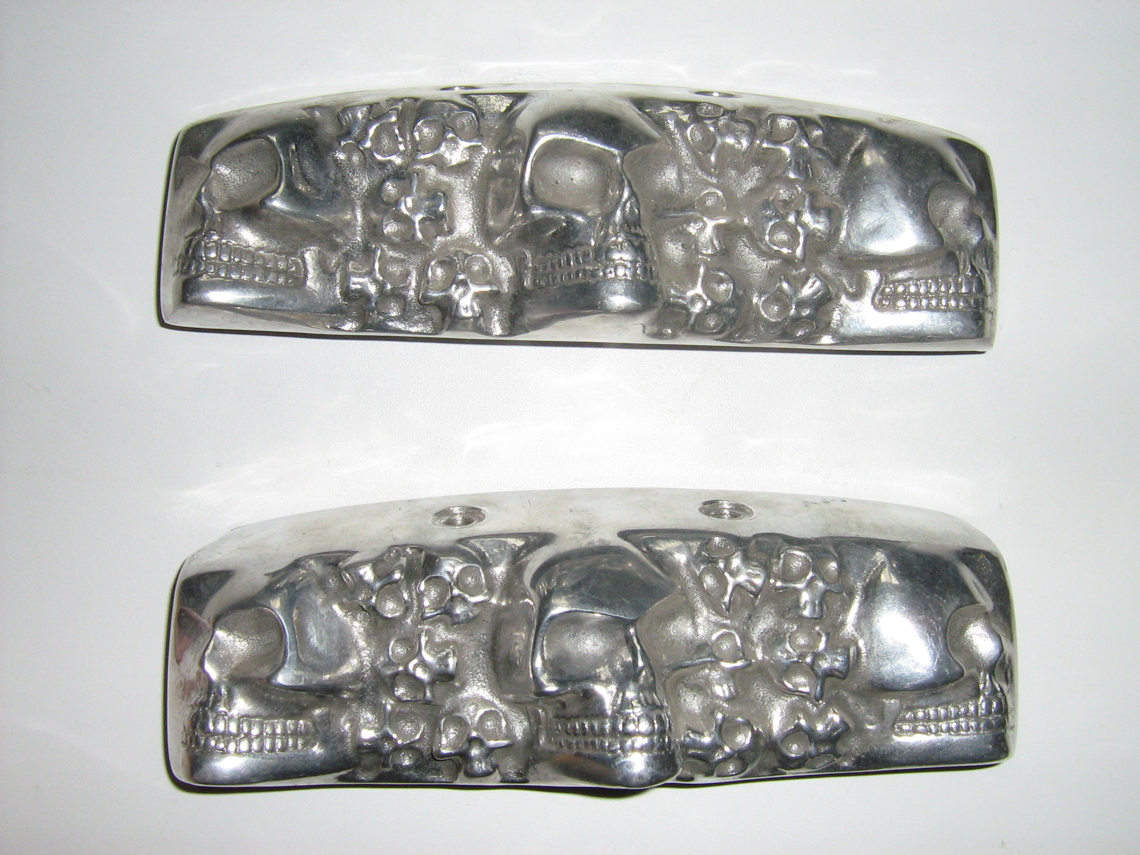 1) Накладки на клапанные крышки с рельефными черепами на Evo- Sporty до 2004 года. Полированный аллюминий. Почти новые, поставил на мото, посмотрел - не понравилось, открутил. (у меня мотор хром, не сочетается).
