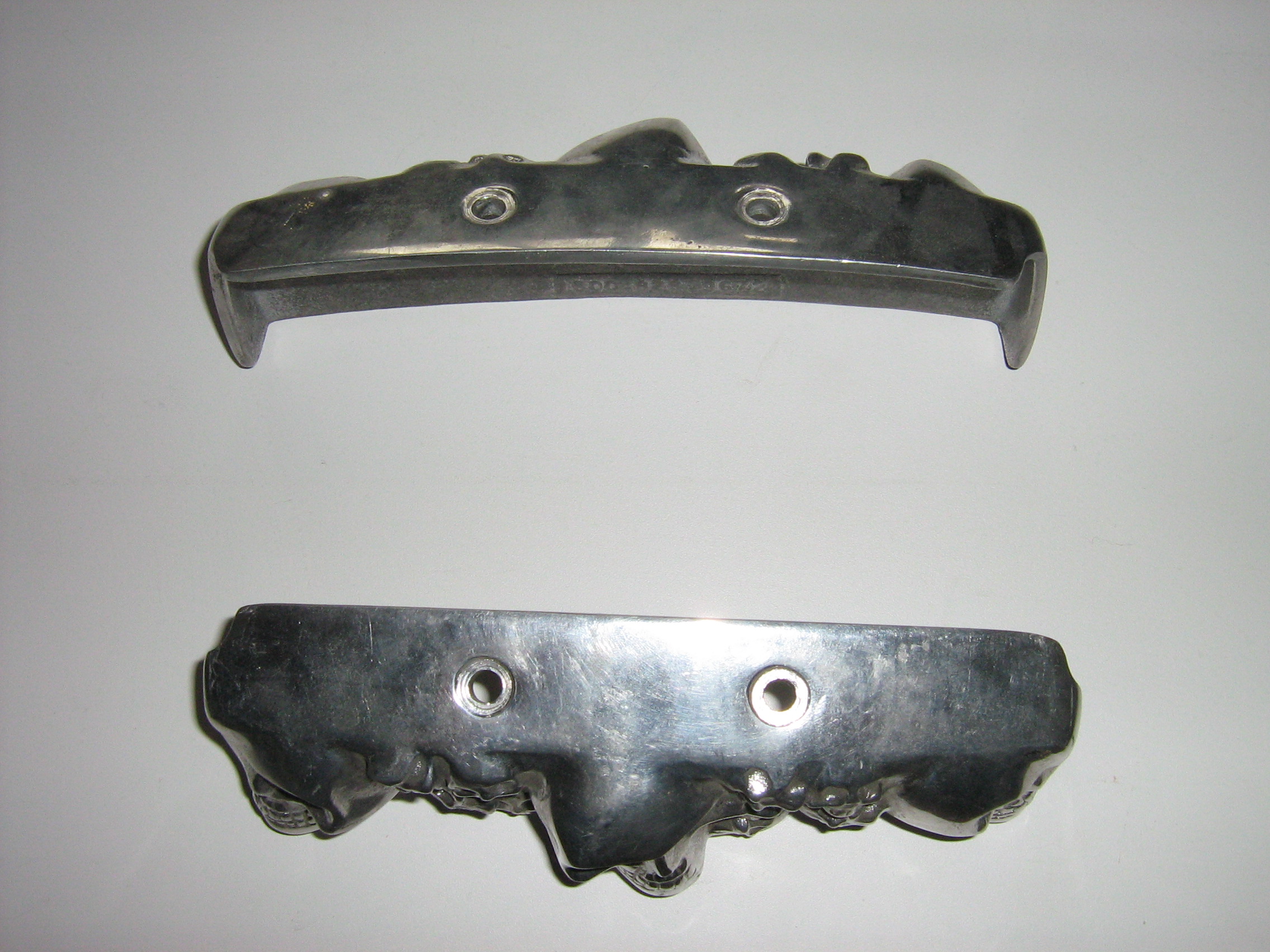 1) Накладки на клапанные крышки с рельефными черепами на Evo- Sporty до 2004 года. Полированный аллюминий. Почти новые, поставил на мото, посмотрел - не понравилось, открутил. (у меня мотор хром, не сочетается).